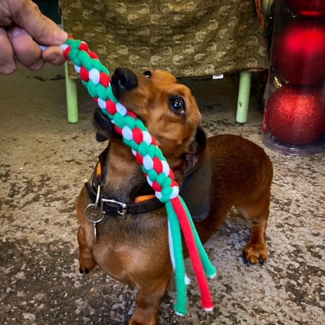 These cotton tuggers are the perfect toy for enjoying a game or two on Christmas morning! The are handmade from soft, cotton cord and have the perfect amount of 'give' in them to give a satisfying stretch!